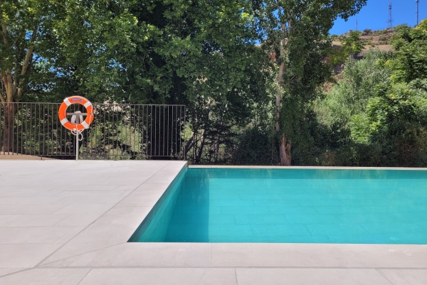 PROYECTO DE ÁREA DE PISCINA EXTERIOR EN EL HOTEL REAL BALNEARIO DE CARLOS III DE TRILLO El proyecto hace referencia a la construcción de una piscina exterior en el Hotel Real Balneario de Carlos III en Trillo. Anexo a la piscina se edifica un volumen que alberga dos vestuarios y un cuarto de instalaciones. La unión con el balneario se acondiciona, generando un acceso desde la terraza del balneario hasta la piscina exterior en un entorno ajardinado.